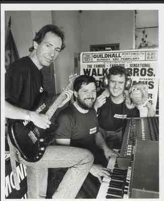 Andrew taught himself how to play guitar, both rhythm and lead, and must be highly commended for doing so, at the same time electronic technology was rapidly being introduced to the music scene, and he was grappling with that too. In fact, Andrew turned out to be pretty good at getting his head around this modern technological stuff, not only was he programming the drum machine, he expanded the ‘on stage’ presence by introducing a synthesiser, which gave us not only a bass but access to all sorts of sounds, brass and strings and woodwind, which he used to great effect. Have a listen to ‘Love Hurts’, I think it’s a fine example of his arranging and engineering skills. We also changed our name to Monkey Business, taking our name from the Chuck Berry classic ‘Too Much Monkey Business’.